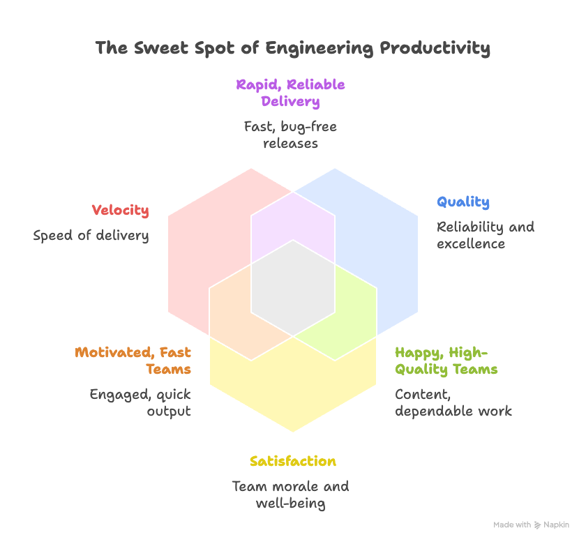 Here’s the critical insight: Velocity, Quality, and Satisfaction are in constant tension. You can't maximize one without affecting the others.